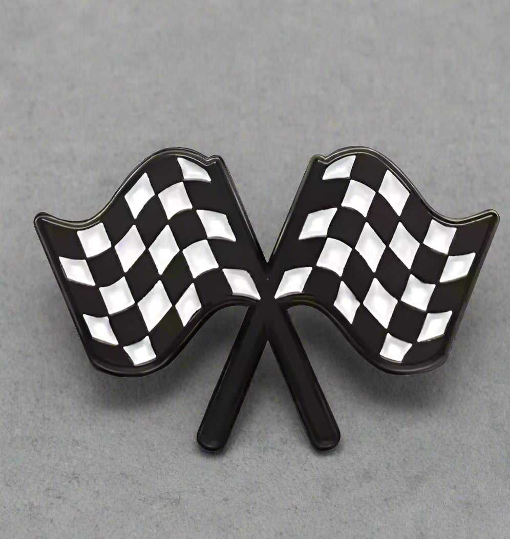 Cross the finish line in style with the Finish Line Pin, a sleek and bold tribute to the high-octane world of motorsport. Featuring two iconic crossed racing flags in classic black-and-white enamel, this pin embodies the speed, passion, and triumph of every race.